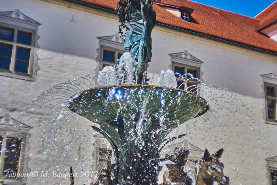 Fun and games with the fountain in the inner courtyard at Schloss Zeil - taken mainly with a Trioplan 50mm